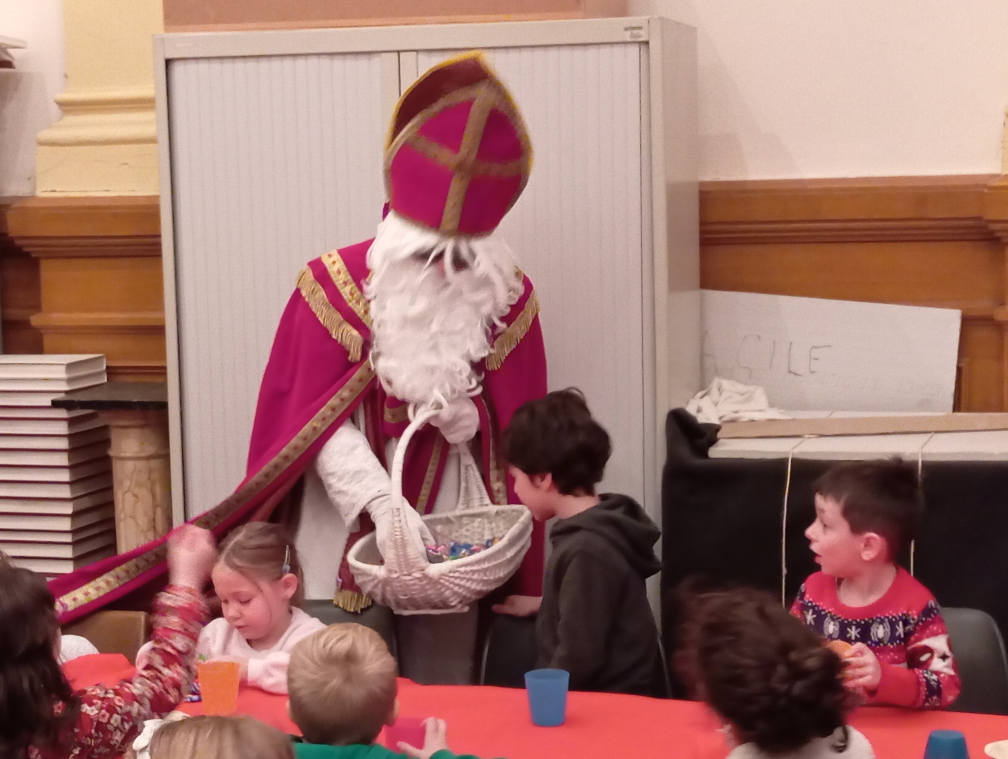 Saint Nicolas est venu saluer les enfants pendant le goûter.